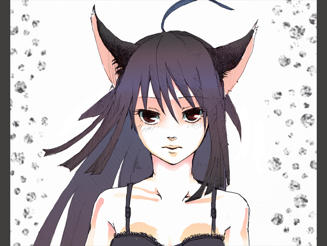 00s1girlahogeanimal earsbare shouldersblack hairbrown eyescamisolecat earscat girlfemale focussolowhite background