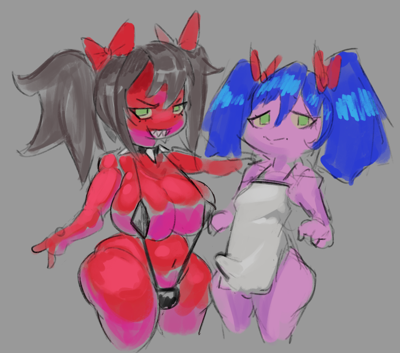 1futa1girlarm around shoulderblack collarblack hairblue hairbowbreastsbulgecleavageclosed mouthcollarcolored skindresserectionerection under clothesfutanarigreen eyesgrey backgroundhair bowhuge breastslong hairlooking at viewernavelpink skinred bowred skinsharp teethsimple backgroundsketchskindentationslingshot swimsuitspiked collarspikesswimsuitteeththick thighsthighstwintailswavy hairwhite dress