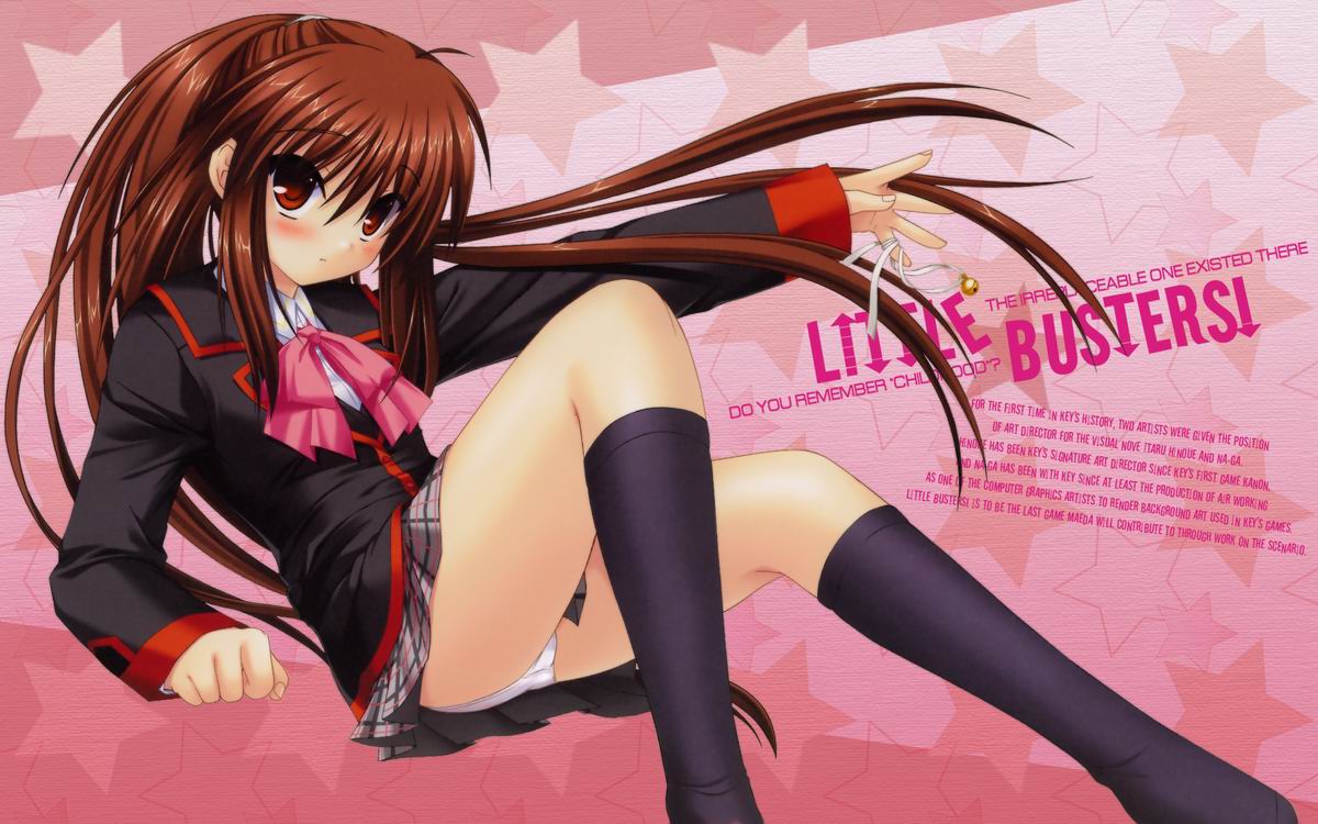 1girlahogebellblack jacketblack socksblushbowbowtiebrown hairgrey skirtholdingjacketjingle bellkneehighslong hairlong sleeveslooking at viewerpantiespantyshotpink backgroundpink bowpink bowtieplaid clothesplaid skirtponytailred eyesschool uniformshirtsittingskirtsocksstar (symbol)star symbol backgroundunderwearupskirtwhite pantieswhite shirt