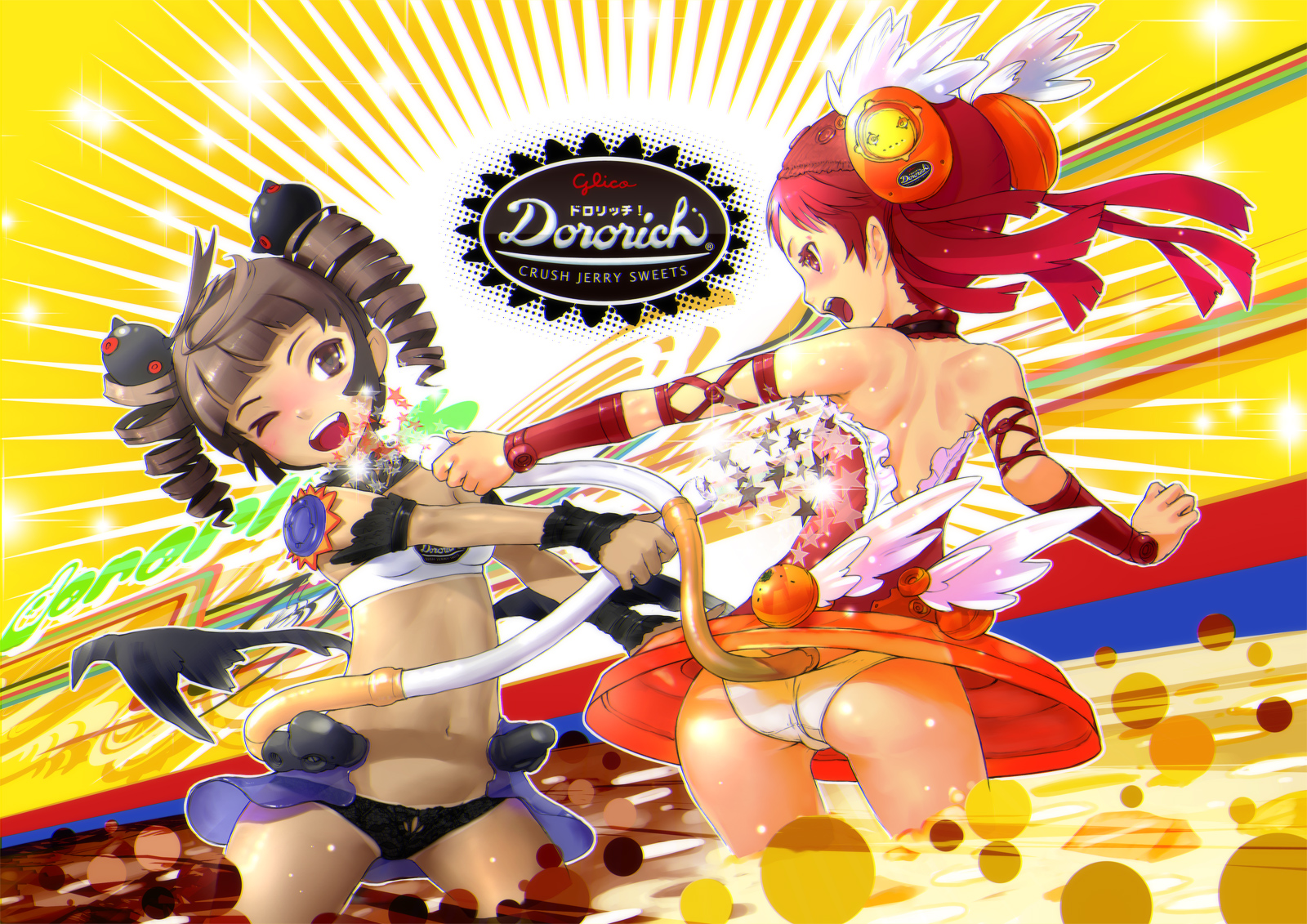 2girlsarm warmersassbackbirdblushbrown eyesbrown haircrowdrill hairflat chestfrom behindgrey eyesgrey hairhairpodsmultiple girlsnavelopen mouthpantiespantyshotred eyesred hairshort hairstar (symbol)tailtantwintailsunderwearwhite pantieswingswink