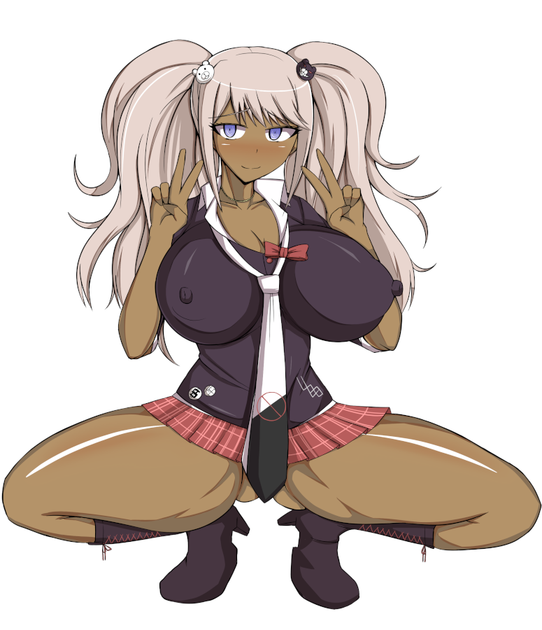 1girlsblue eyesbreastscleavagedark skindark-skinned femaledouble verect nipplesfemaleFlag for Deletiongangurohair ornamenthuge breastshumankneehighslong hairlooking at viewernipplessmilesolospread legssquattingthick thighstied hairtwintailsv