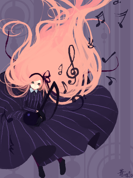 1girldressfemale focushair ribbonlong hairmusical noteoekakipink hairribbonsignaturesolovery long hair