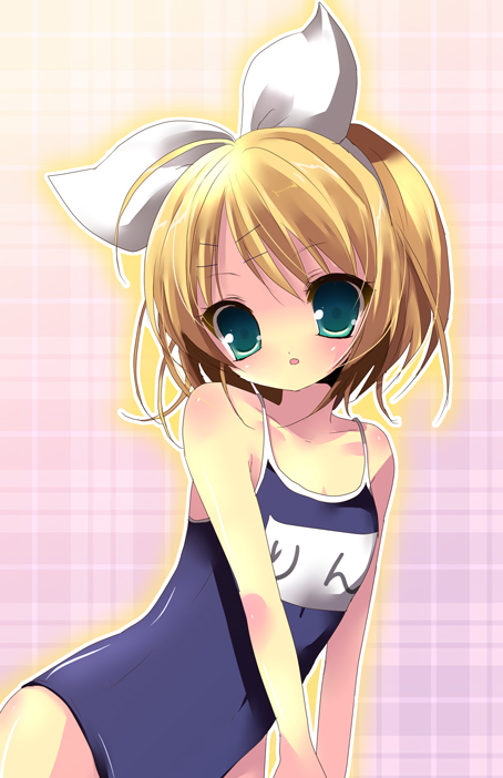 1girlaqua eyesblonde hairchildfemale focushair ornamenthair ribbonhairclipone-piece swimsuitribbonschool swimsuitshort hairsoloswimsuit