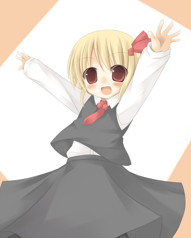 :o1girlarms upblonde hairfemale focusoutstretched armsred eyesribbonshort hairsolostandingwhite background
