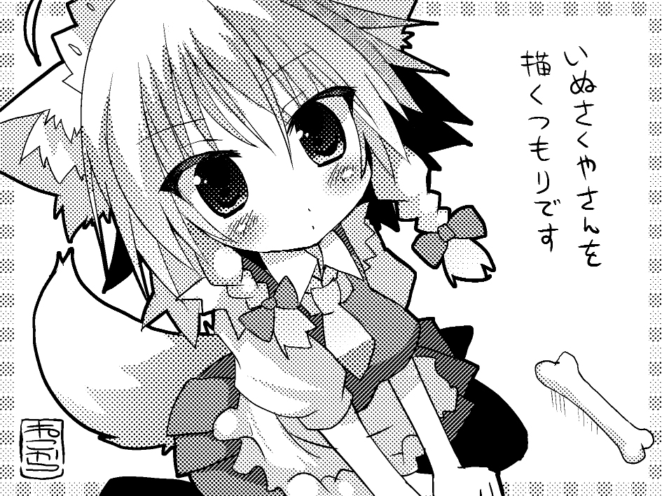 1girlanimal earsbraiddog earsdog tailfemale focusgreyscalekemonomimi modemonochromeribbonsolotailtwin braids
