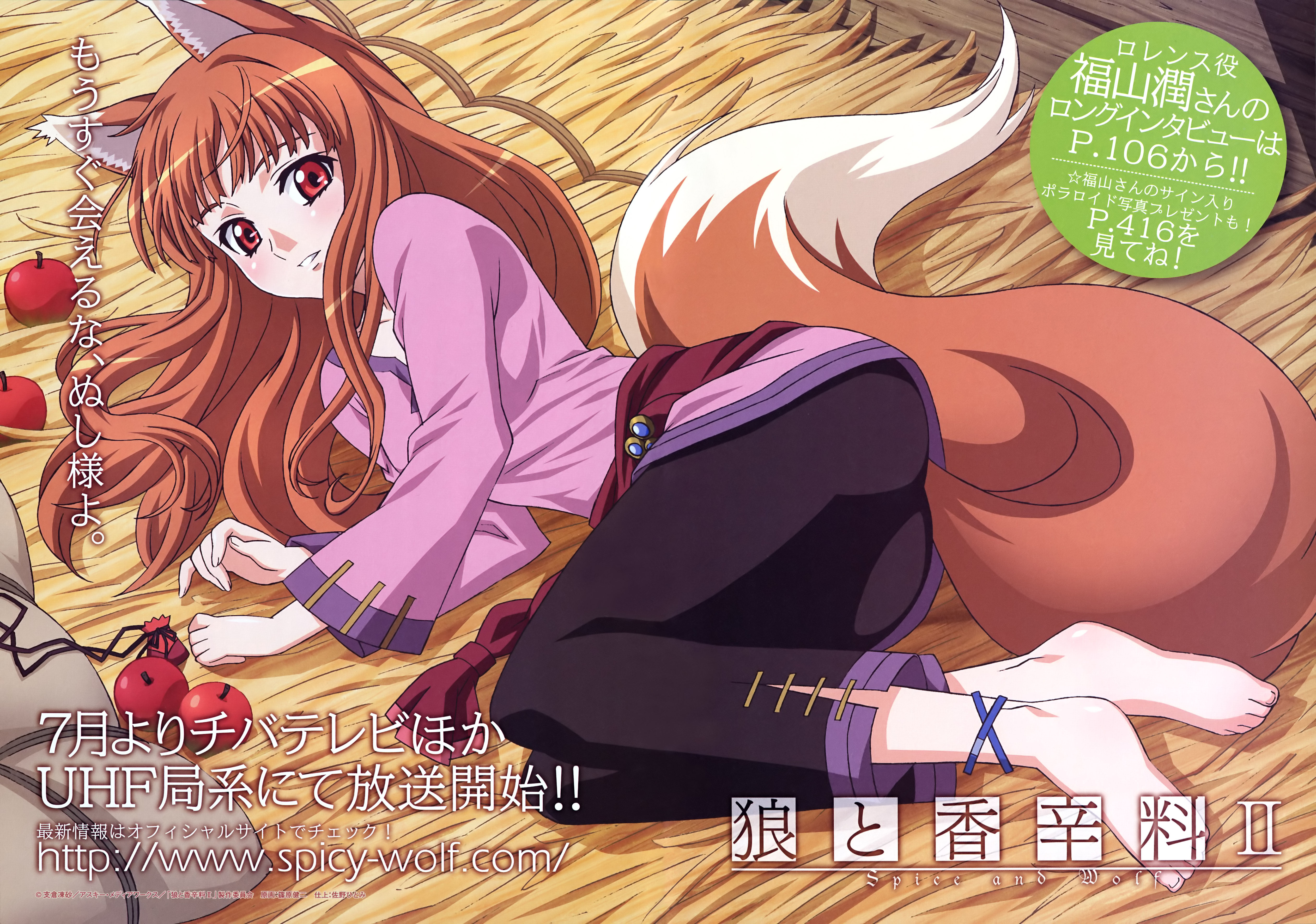 00s1girlanimal earsankletappleassbarefootbrown hairfeetfemale focusfoodfruitjewelrylong hairlyingred eyessmilesolotailwheatwolf earswolf tail