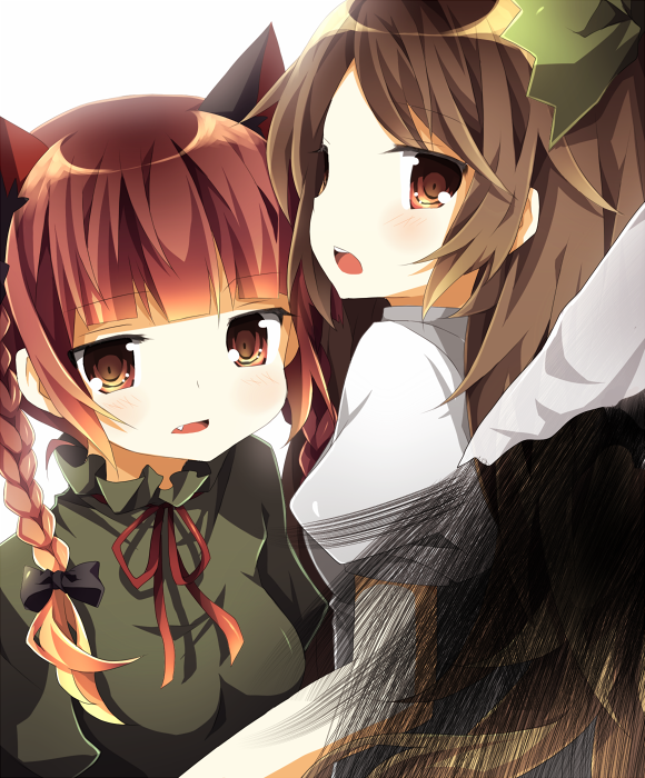 nanaume (shichimi tougarashi), hakurei reimu, izayoi sakuya, kirisame marisa, touhou, silver hair, bad id, bad pixiv id, 3girls, blonde hair, brown hair, female focus, hat, japanese clothes, long hair, maid, miko, multiple girls, ribbon, short hair, skirt, twintails, upper body, white background