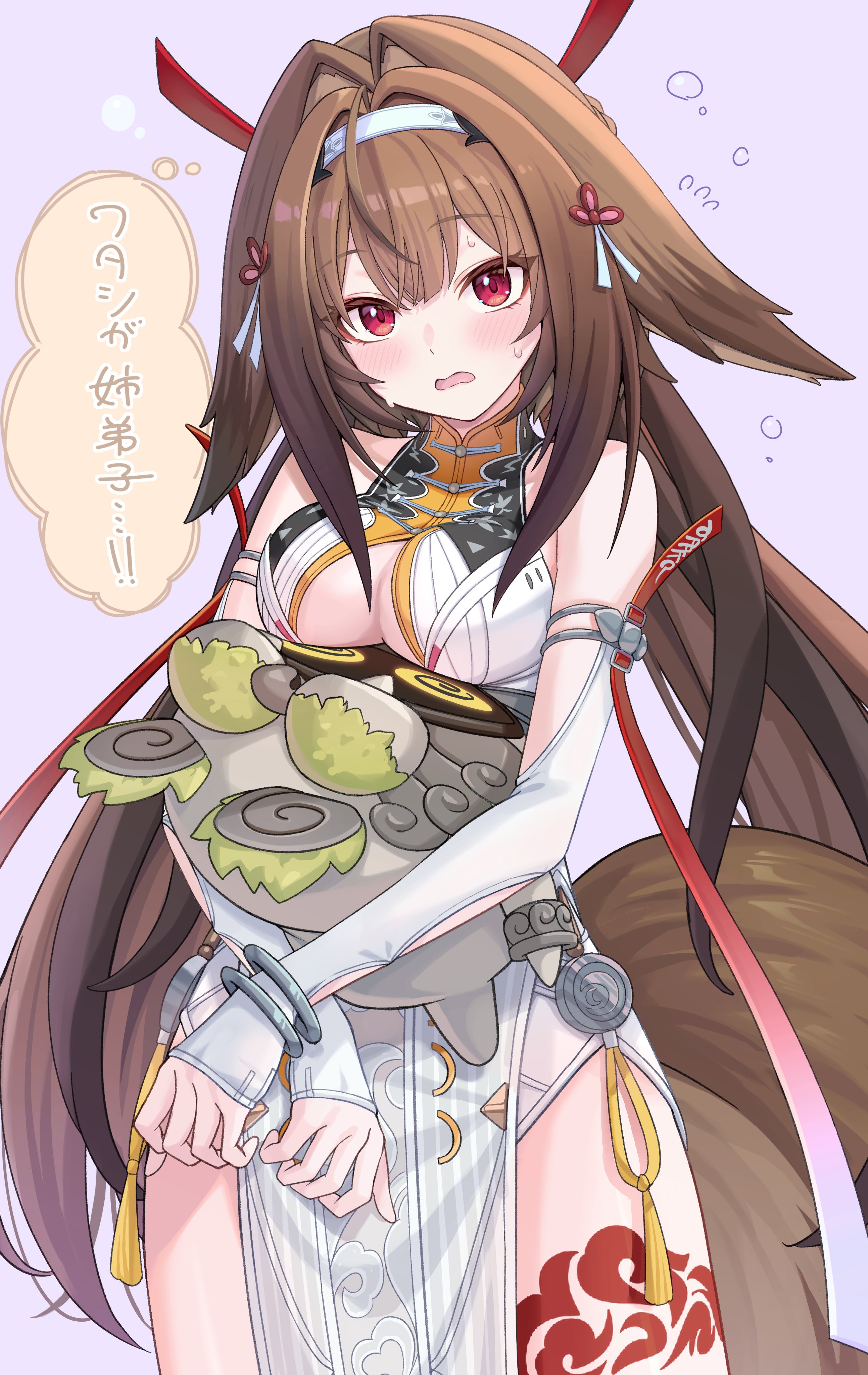 1boy1girlarmletbare shouldersblushbraceletbreast restbreastsbrown hairbrown tailchina dresschinese clothescloverclover hair ornamentcowboy shotdressdroopy earsflying sweatdropshair ornamenthairbandholdingjewelryleg tattoolong hairlooking at viewermedium breastsmetal braceletopen clothespelvic curtainpink backgroundred eyessee-through clothessilver armletsilver braceletspeech bubblesweatdroptailtattoothought bubblevery long hairwhite dresswhite hairband