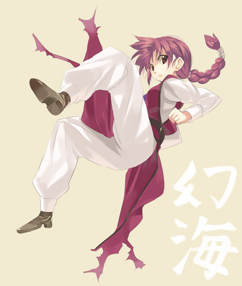 1girlaged downbraidfemale focusfull bodylong hairpurple hairred eyesshoessimple backgroundsolotorn clothes