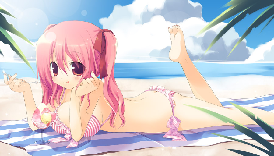 :q1girlartistic errorbad feetbarefootbeachbikiniblushbreastsbrown eyesclouddayfeetfemale focusfoodice creamlarge breastslong hairlyingoceanon stomachoutdoorspink hairsandskysmilesolessolostriped bikinistriped clothesswimsuittoestonguetongue outtoweltwintailswrong foot