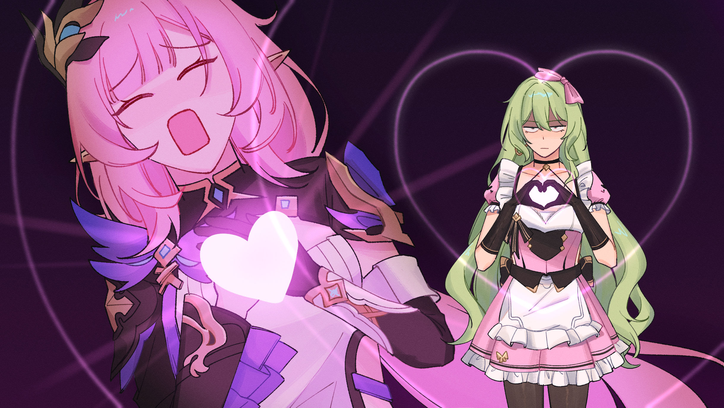 elysia (honkai impact)elysia (miss pink elf) (honkai impact)mobius (honkai impact)mobius (mobius dressing) (honkai impact)