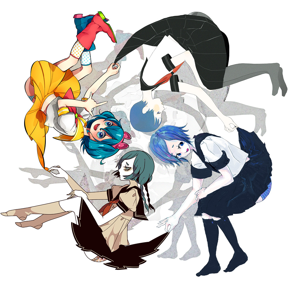 4girlsblue eyesblue hairbraidclothes liftmultiple girlspantiespantyhoseschool uniformserafukuskirtskirt lifttwin braidsunderwear