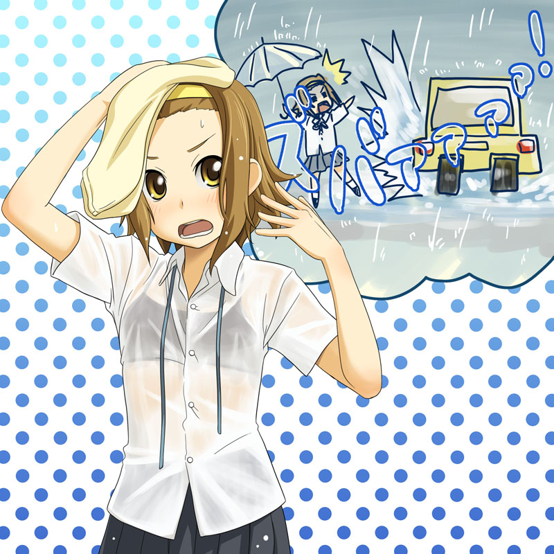 00s1girlbrabrown hairfemale focushairbandlingeriepolka dotschool uniformsee-through clothesshort hairsolosports bratowelunderwearwet