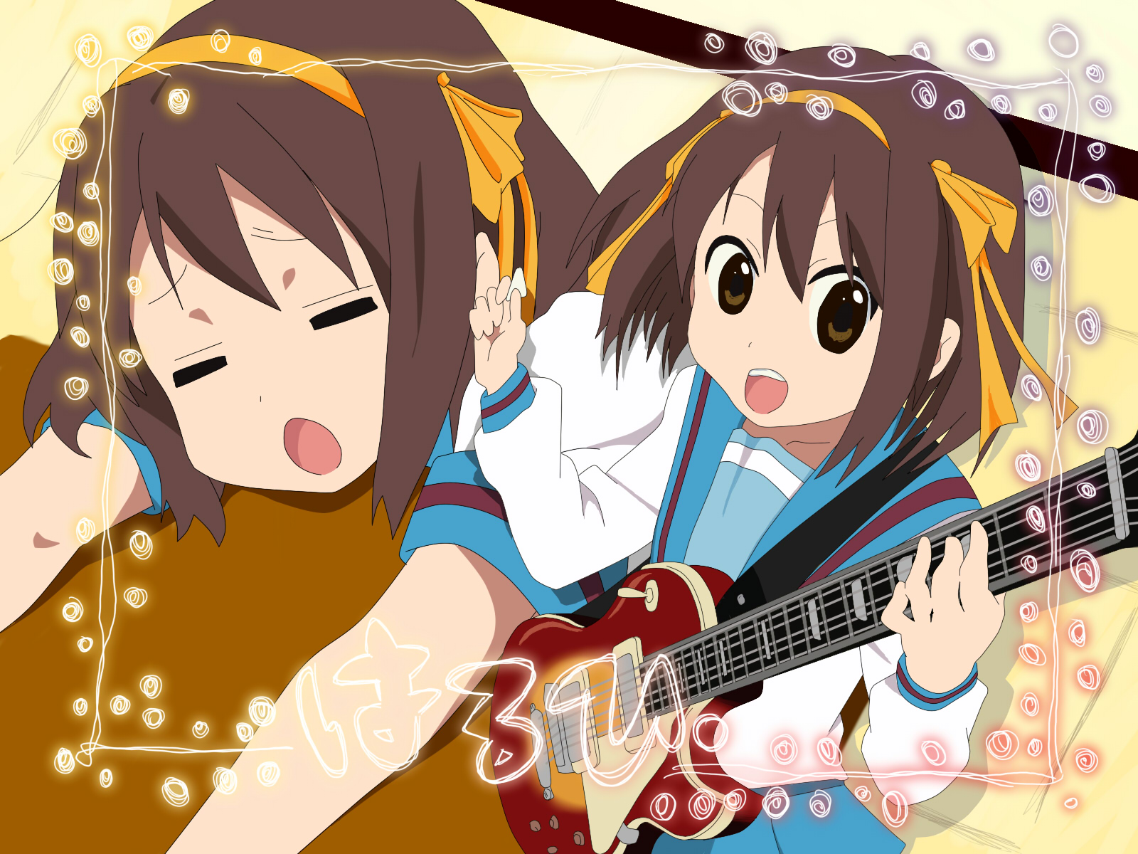 1girlcrossoverelectric guitarfemale focusgibson les paulguitarinstrumentparodyplectrumschool uniformserafukusolostyle parody