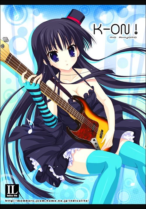 00s1girlblack hairblue eyesblue thighhighsblunt bangsbreastscleavagedressfemale focusgloveshathime cutinstrumentmini hatmini top hatsingle glovesolothighhighstop hat