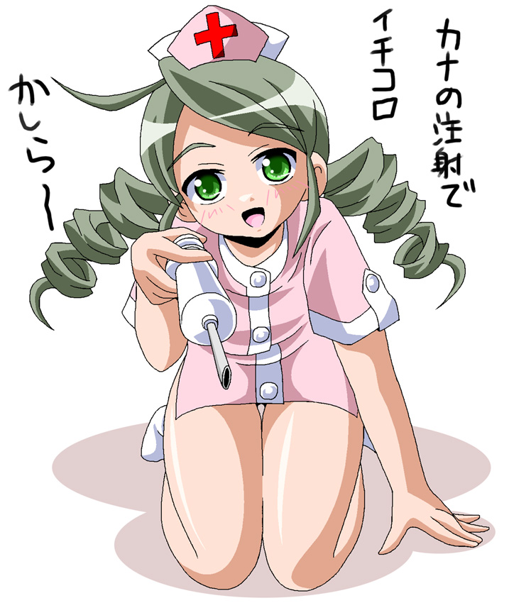 00s1girlahogedrill hairfemale focusgreen eyesgreen hairhatmatching hair/eyesnursesolotext focus