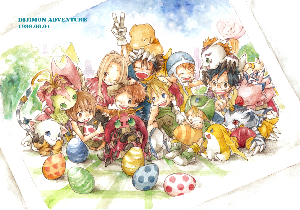 2girls5boyscopyright namedigimon (creature)digitamaeggeveryonemultiple boysmultiple girlsphoto (object)