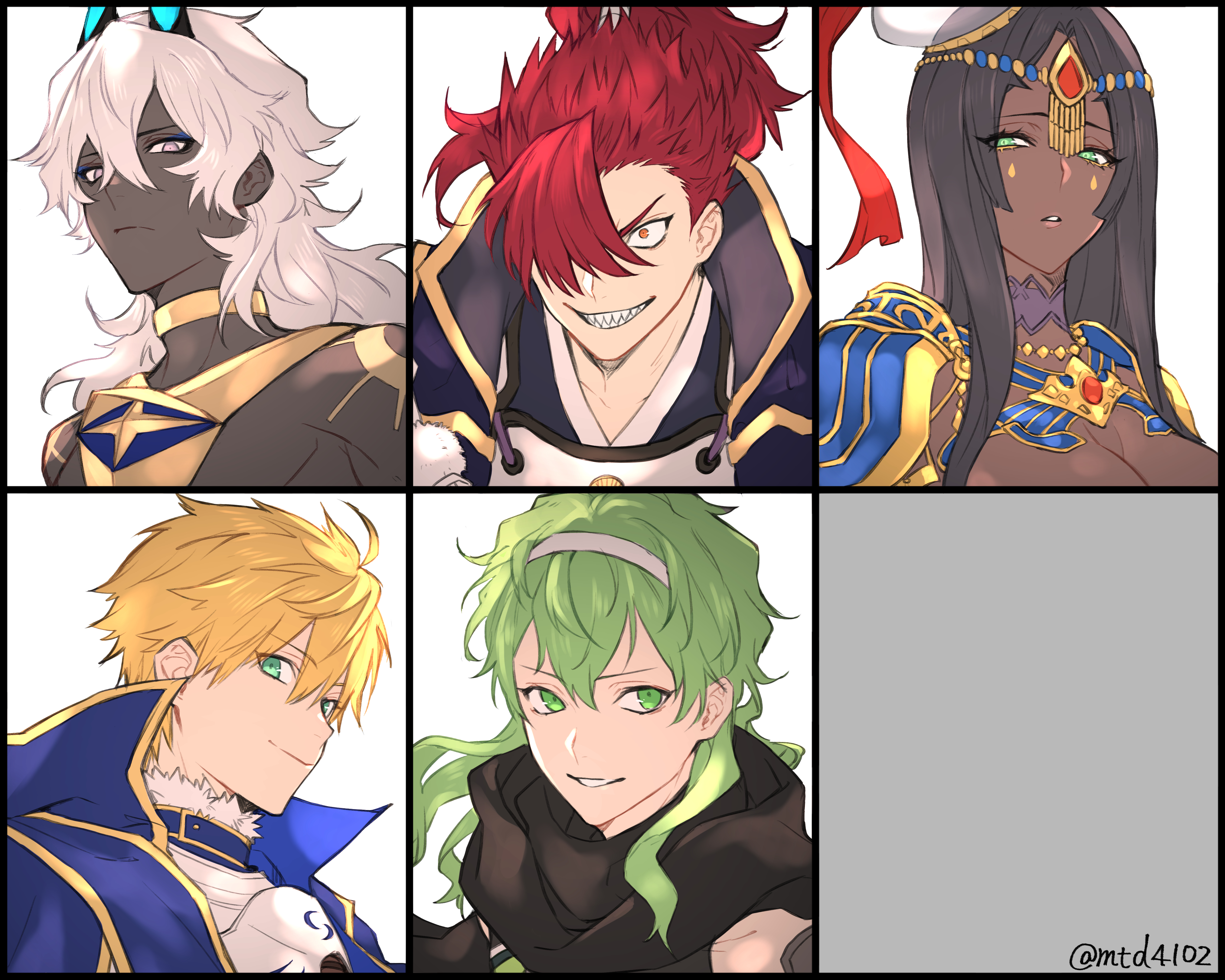 1girl4boysarmorblack hairblonde hairbreastschokercleavagecrazy eyescrazy grincrazy smiledark skindark-skinned femaledark-skinned malefrowngreen eyesgreen hairgrinhair over one eyehairbandlarge breastsmultiple boysneck ribbonparted lipspurple chokerred eyesred hairribbonsharp teethshoulder armorsmileteethtwitter usernamevery dark skinwhite hairwhite hairband