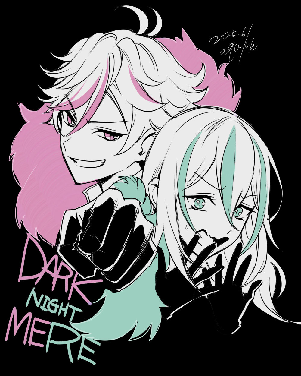 2boysblack backgroundblue eyesclenched handglovesgringroup namehair between eyeshands upidol clothesidol land priparalong hairlooking at viewermale focusmulticolored hairmultiple boysooedo shinyaopen mouthpartially coloredpink eyespink streaksshort hairsignaturesimple backgroundsmilestreaked hairsweatdropupper bodyuruu akuaushimitsu (pripara)
