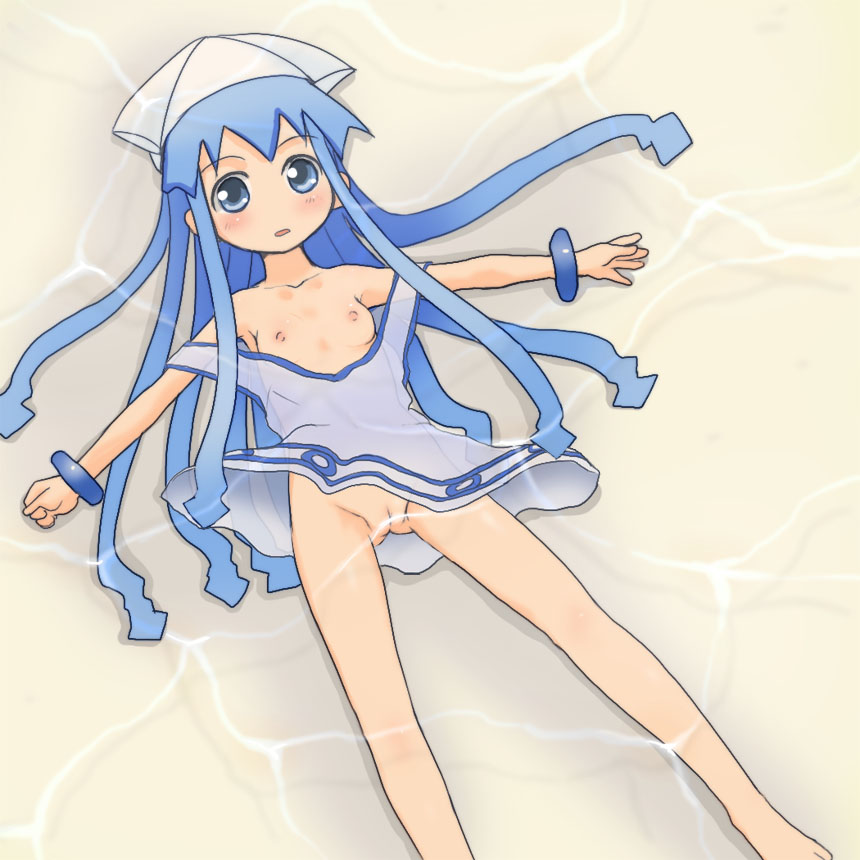 1girlafloatbanglebarefootblue eyesblue hairblushbraceletcleft of venusdressfat monsfemale focusflat chesthatjewelrylolilong hairmatching hair/eyesnipplesoff shoulderoutstretched armspussysee-through clothessolospread armsstrap slipuncensoredwaterwetwet clothes