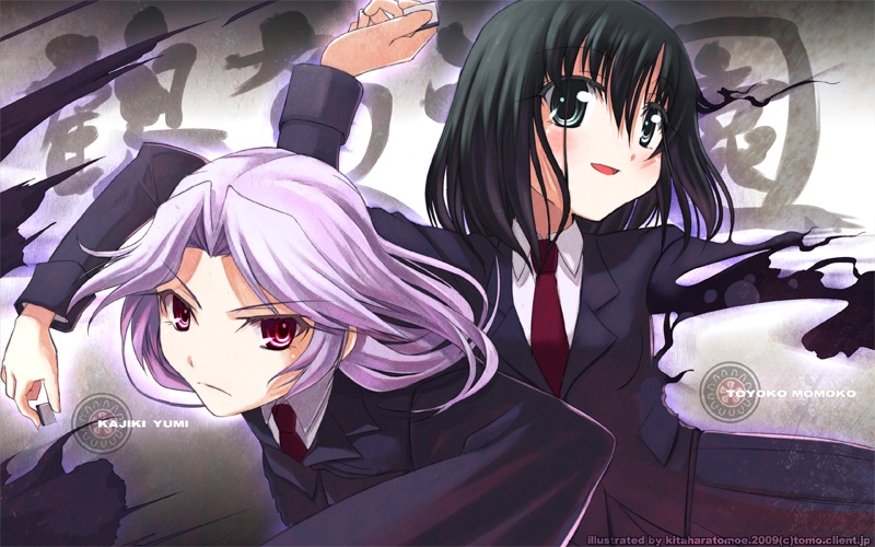 00s2girlsblack hairboard gameghostgreen eyesholdingholding mahjong tilelong hairmahjongmahjong tilemultiple girlsnecktiepurple hairred eyesschool uniformshort hairskirt