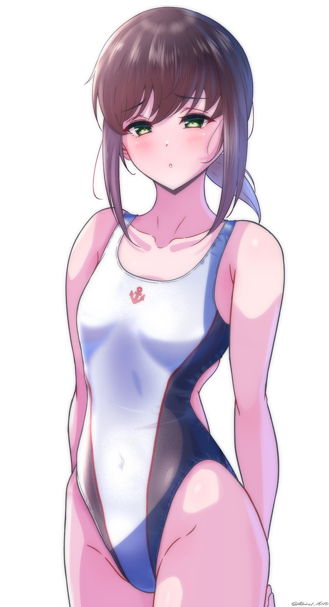 kasawara, shirakami fubuki, hololive, absurdres, commentary request, highres, 1girl, :d, ahoge, animal ear fluff, animal ears, blue eyes, crossed bangs, fox ears, fox girl, fox tail, full body, hair between eyes, long hair, looking at viewer, naked shirt, open mouth, parted lips, shirt, smile, solo, standing, standing on one leg, tail, virtual youtuber, white background, white hair, white shirt, zoom layer