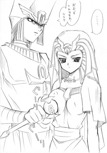 1boy1girlancient egyptianancient egyptian clothesankhbreast pressmillennium necklacemillennium rodmonochrome