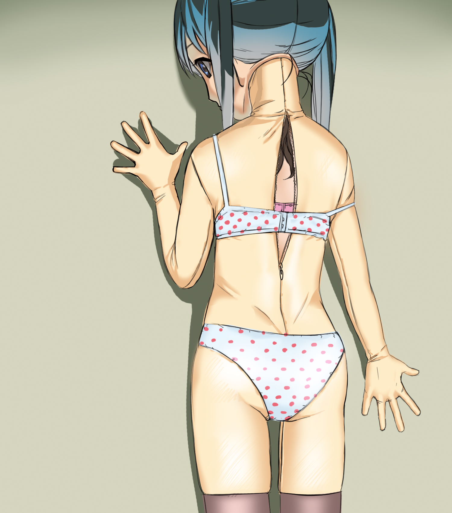 blue eyesblue hairbrabrown hairFlag for Deletiongrey thighhighskigurumilatexlong hairpantiespink brapolka dot brapolka dot pantiessecond bodysuitskinthighhighszipper
