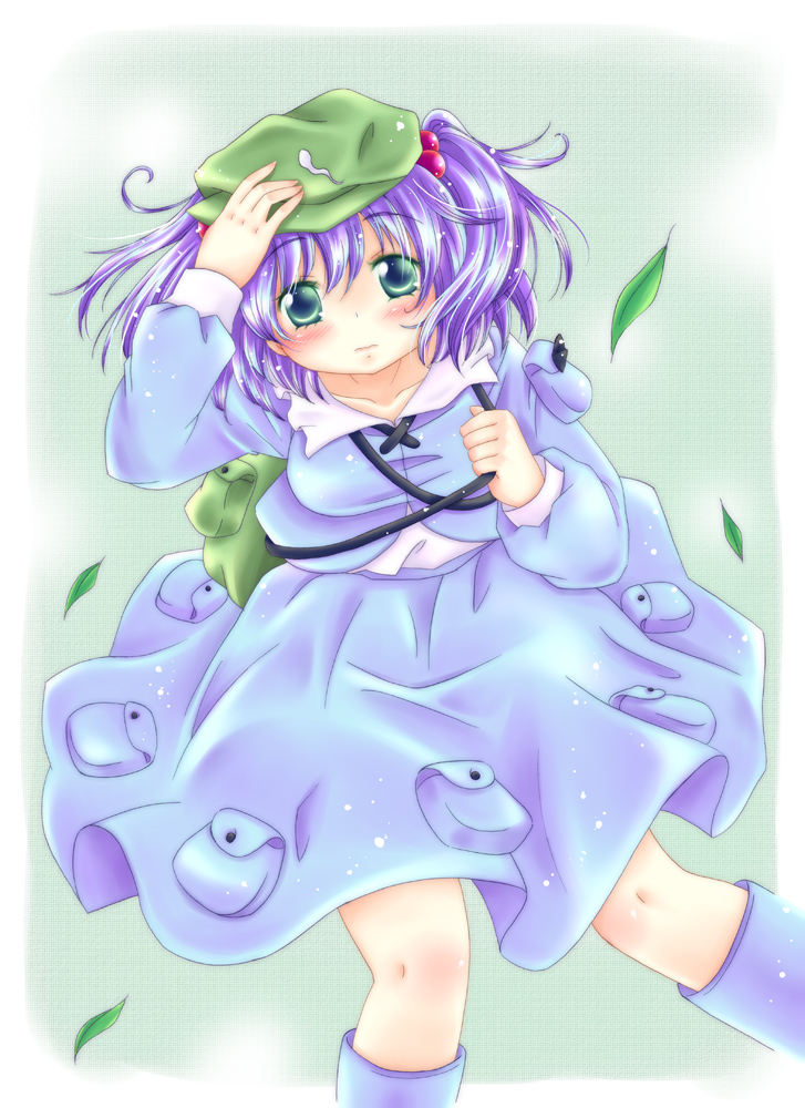 kawada hotori, non-web source, blue hair, dog, hug, long hair, one eye closed, red eyes, solo, wink
