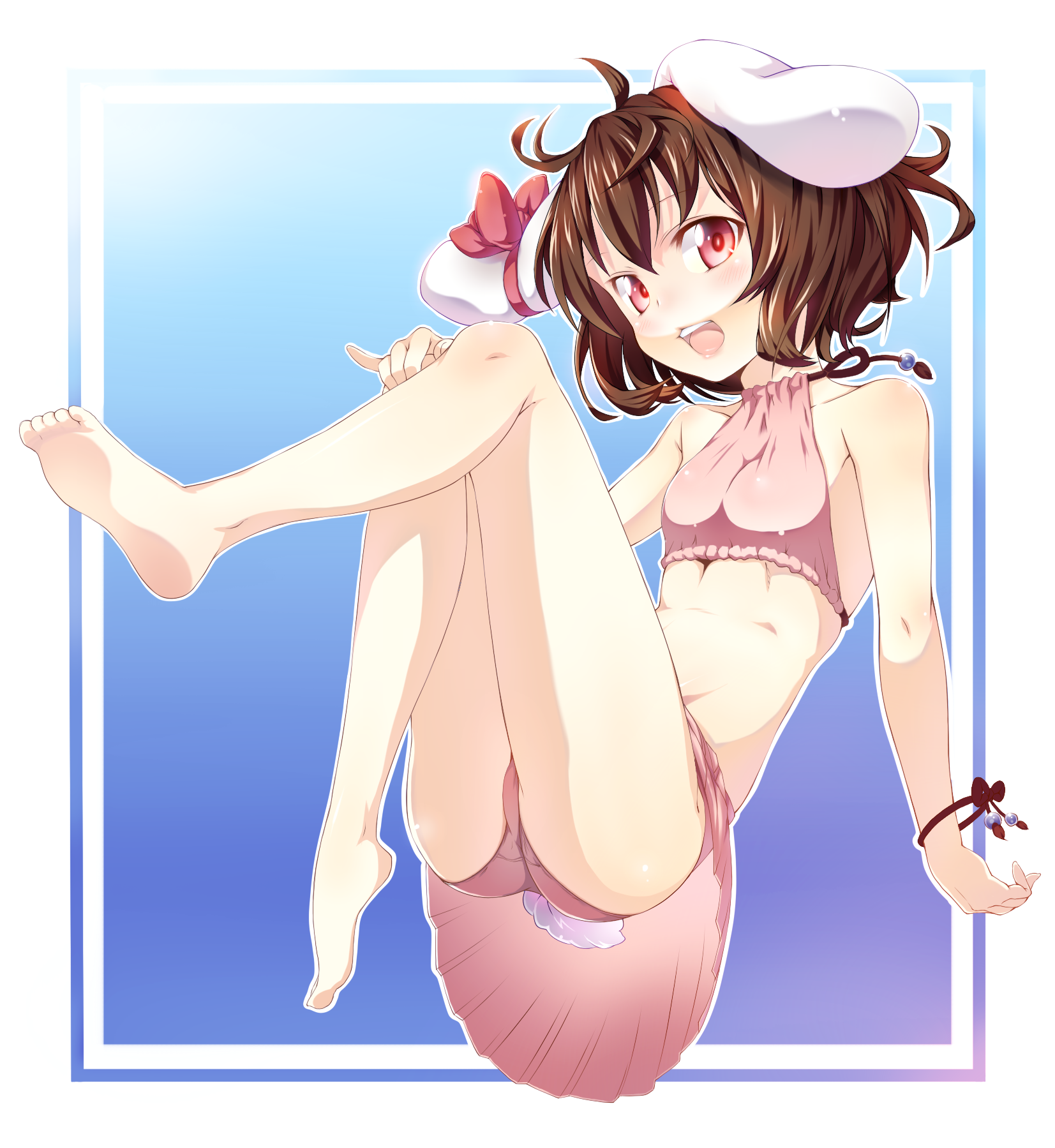 kirisame marisa, megumin, kono subarashii sekai ni shukufuku wo!, touhou, absurdres, commentary request, highres, 1girl, alternate costume, bandaged leg, bandages, belt, belt collar, black gloves, black panties, black thighhighs, blonde hair, blush, bow, braid, breasts, brown belt, brown cape, brown hat, button eyes, buttons, cape, cleavage, collar, cosplay, dress, fingerless gloves, gloves, grin, hair bow, hat, long sleeves, looking at viewer, megumin (cosplay), nagisa (omiwatari no ya), off-shoulder dress, off shoulder, panties, red dress, side braid, single braid, single thighhigh, smile, solo, thighhighs, trait connection, underwear, white bow, witch hat, yellow eyes