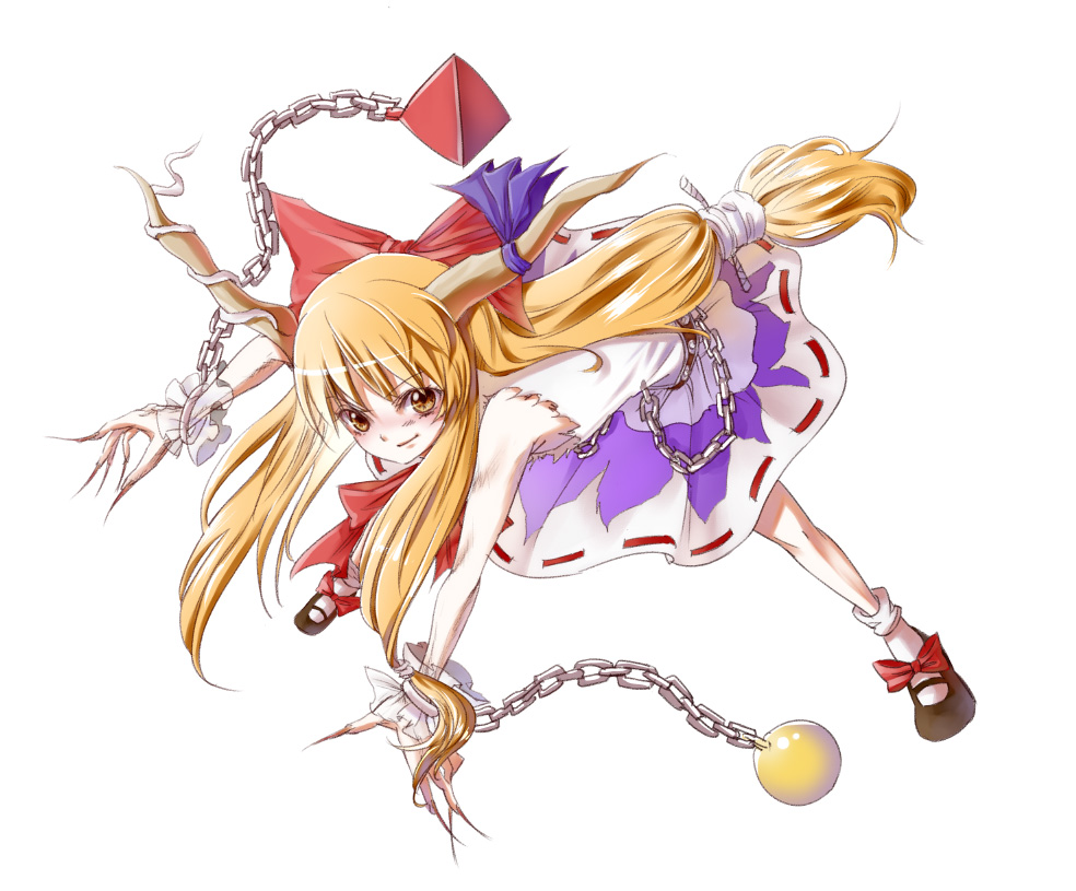 1girlblonde hairchainfemale focusfingernailsfull bodyhornslong fingernailslong hairnail (hardware)simple backgroundsolowhite backgroundwrist cuffsyellow eyes