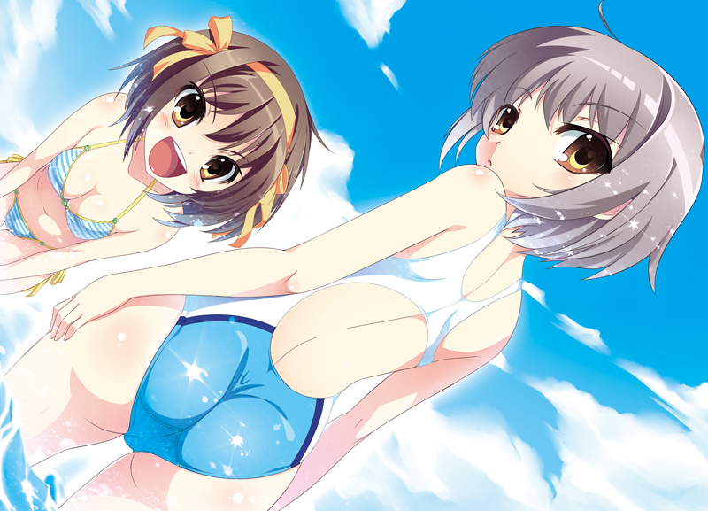 00s2girlsassbackbikiniblushbreastsbrown haircleavagecompetition swimsuitdaydutch anglefrom behindgrey hairhair ribbonleaning forwardlooking backmedium breastsmultiple girlsone-piece swimsuitopen mouthoutdoorsribbonshort hairside-tie bikini bottomskystriped bikinistriped clothesswimsuitwadingwateryellow eyes