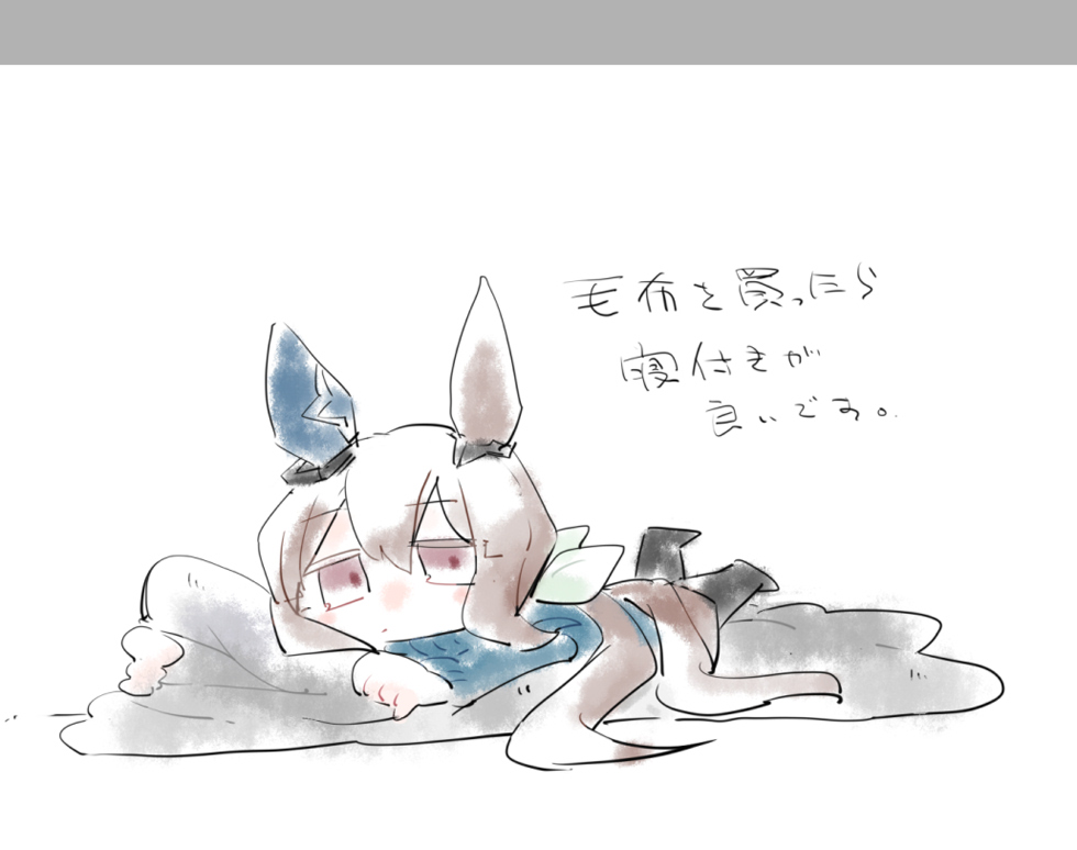 1girlanimal earsblack pantyhoseblue sweaterbrown hairchibiclosed mouthhair between eyeshair ribbonhorse earshorse girlhorse taillong hairlong sleeveslow ponytaillyingno shoeson stomachpantyhoseponytailred eyesribbonsolosweatertailvery long hairwhite backgroundwhite ribbon