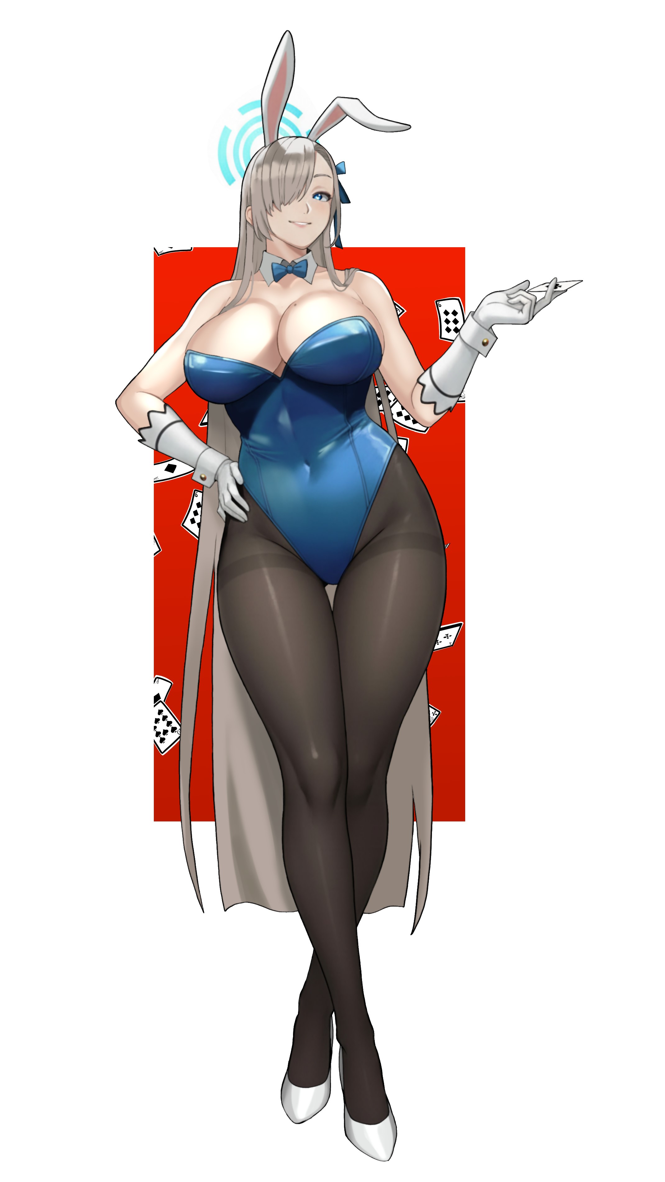 mhnohouki, takasaki yu, uehara ayumu, love live!, love live! nijigasaki high school idol club, absurdres, commentary request, highres, 1girl, black hair, black skirt, black thighhighs, blue bow, bow, gradient hair, green eyes, green hair, hair between eyes, medium hair, multicolored hair, pleated skirt, simple background, sitting, skirt, solo, streaked hair, thighhighs, twintails, two-tone hair, wariza, white background, yuri