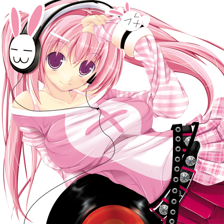 :31boy1girlbare shouldersbeltbra strapbreastsclosed eyesfemale focusheadphoneslarge breastslong hairpink hairpurple eyesskirtsmilesolotwintailsx mouth