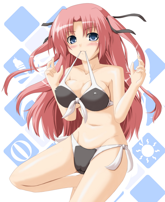 nanao naru, 2girls, black hair, blue eyes, brown eyes, dessert, eating, food, green shirt, green skirt, hair ornament, hair ribbon, hairclip, holding, long sleeves, looking at viewer, multiple girls, pink hair, pleated skirt, ribbon, sailor collar, school uniform, serafuku, shirt, short hair, skirt, smile, tongue, twintails, white ribbon, zoom layer