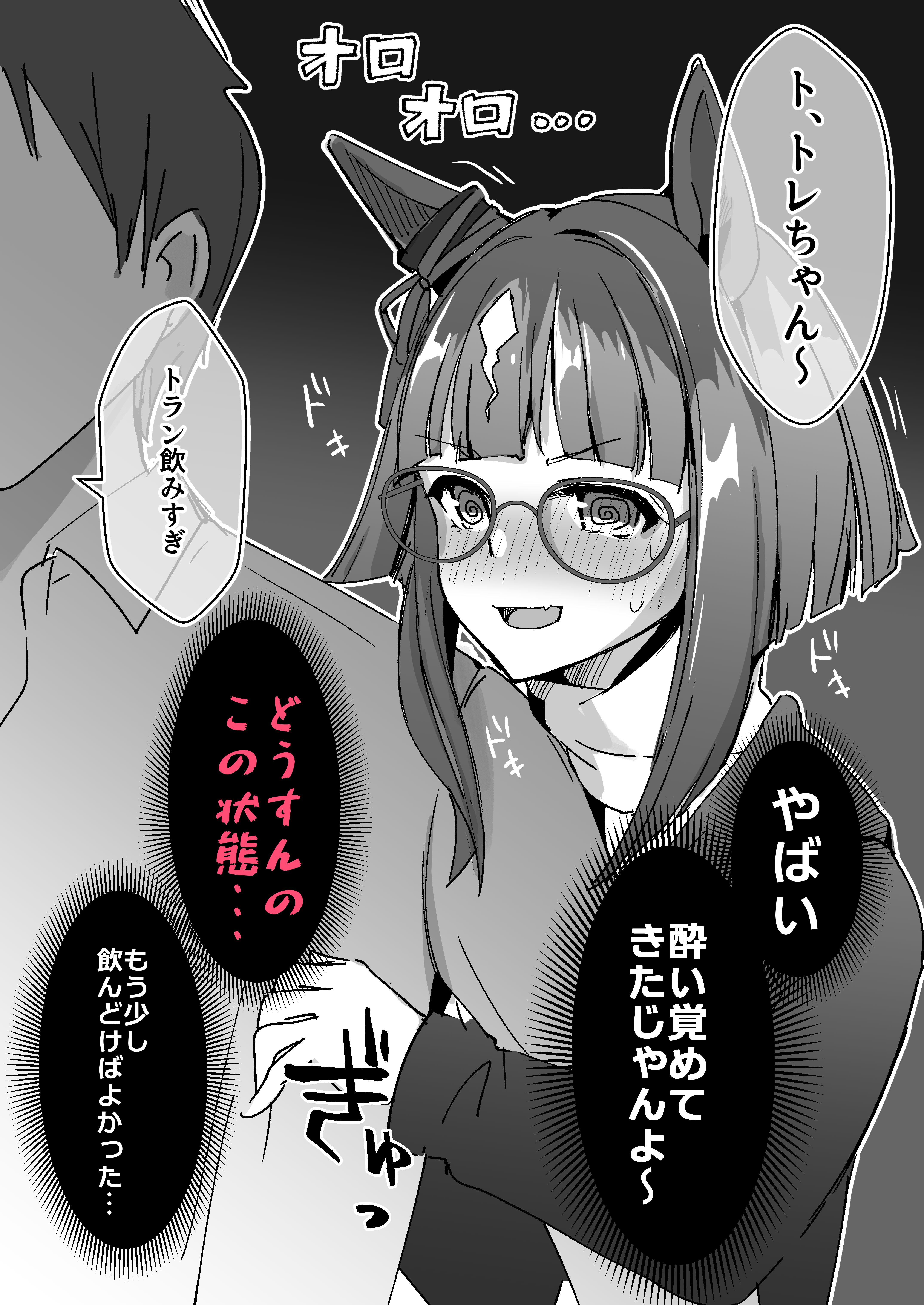 1boy1girlanimal earsarm hugblunt bangsblushbowear ribbonglassesgreyscalehorse earshorse girllong sleevesmonochromemulticolored hairnose blushopen mouthroots (hair)short hairsolo focusupper body