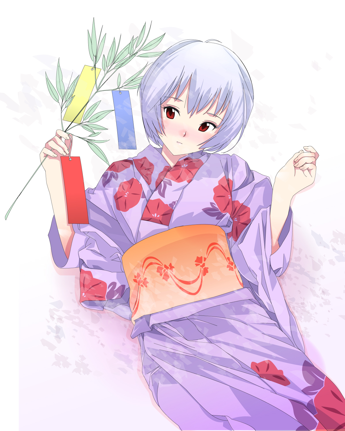 1girlblue hairblushbreastsfemale focusjapanese clotheskimonomedium breastsred eyessolotanabatatanzakuyukata