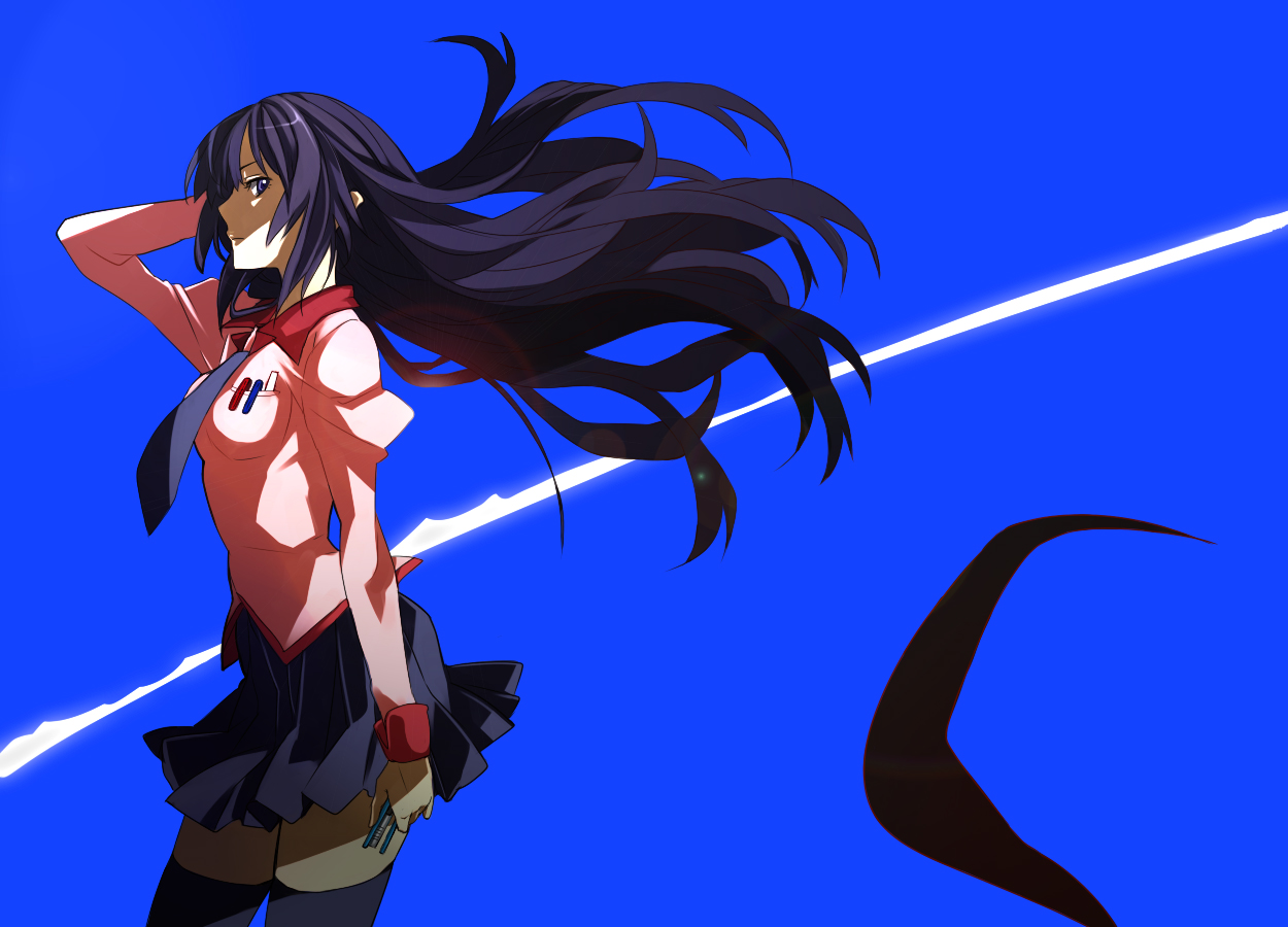 00s1girlahogeblue eyesfemale focusnecktiepurple hairschool uniformskirtsolostaplerthighhighstwintailswindzettai ryouiki