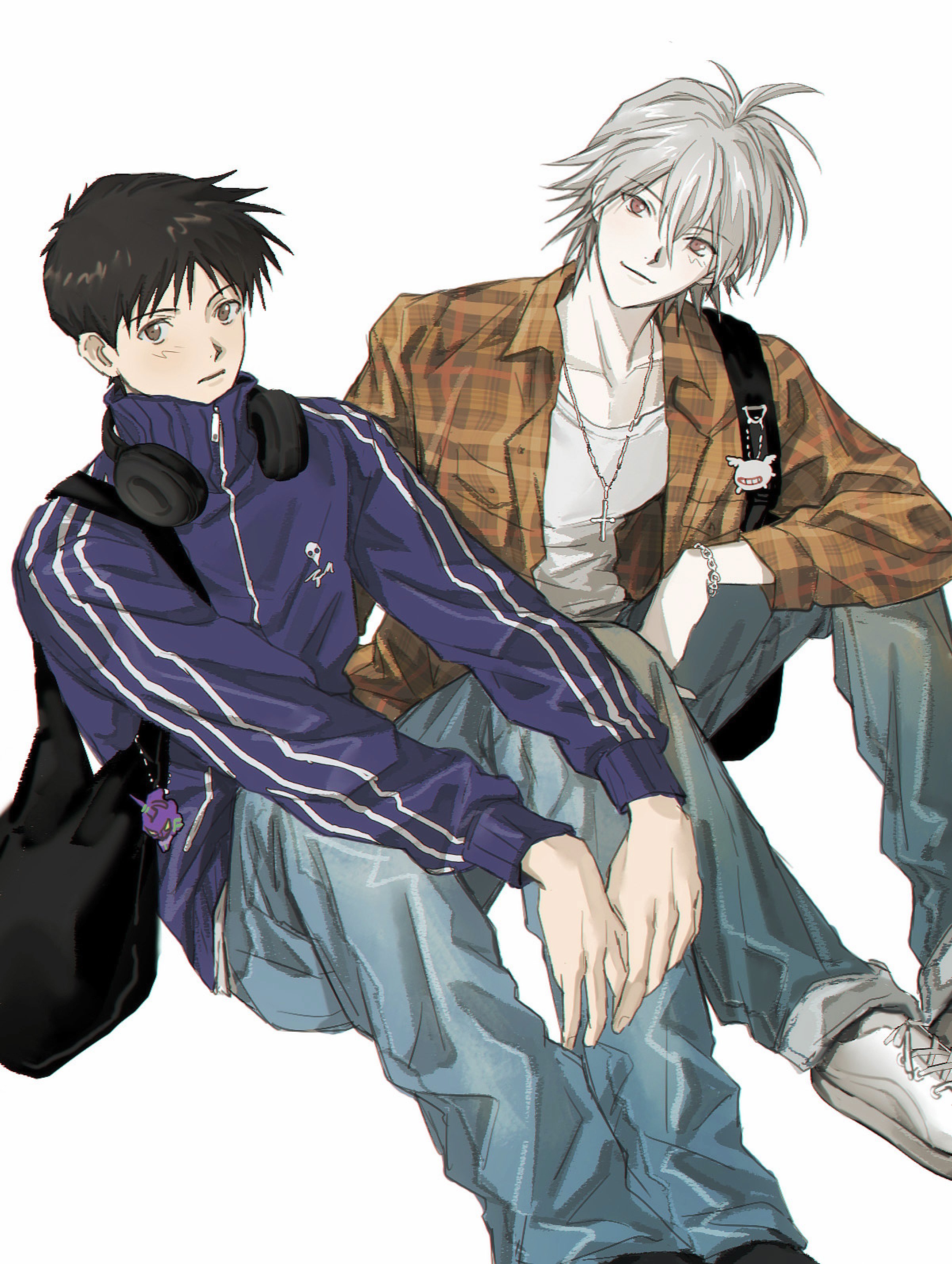 2boysbagblack hairchanmineheadphonesheadphones around neckheadphones removedjacketmale focusmultiple boysshirttrack jacketwhite hair