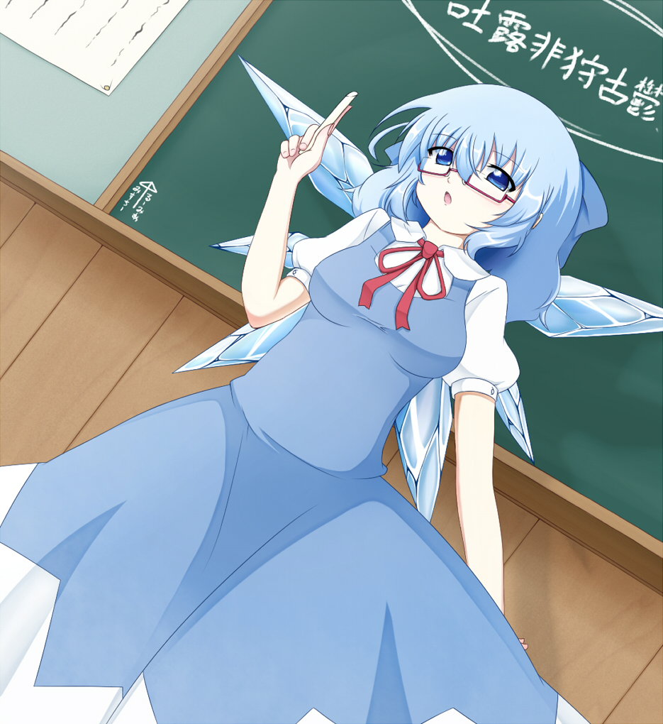 1girlaged upai ai gasabespectacledblue eyesblue hairbowbreastschalkchalkboarddressdutch anglefemale focusglasseshair bowmatching hair/eyesribbonshort hairsoloteacherwings