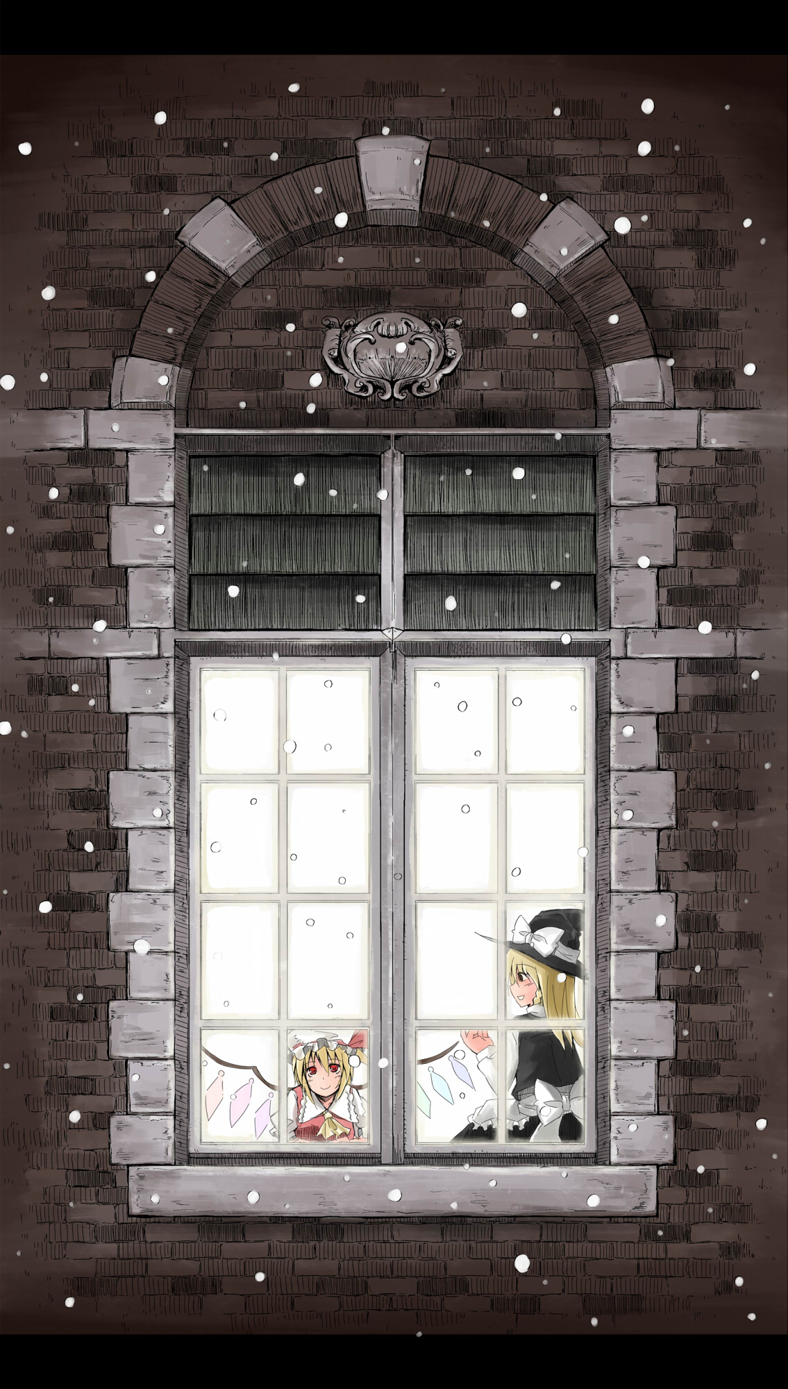 2girlsapronblonde hairfemale focushatletterboxedlooking outsidemultiple girlssmilesnowwindowwingswitch hat