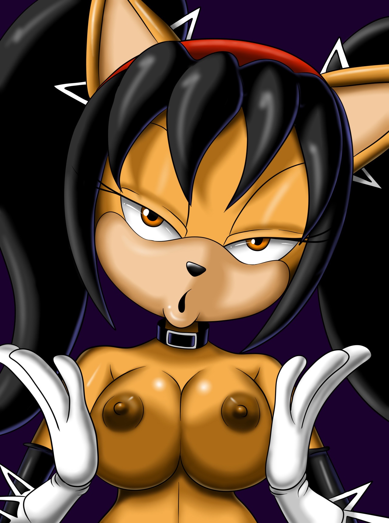 amber eyesanthroareolaeblack hairbreastscollarfelinefemaleFlag for Deletionfurrygloveshairbandlooking at viewernudesolotied hairtwintails