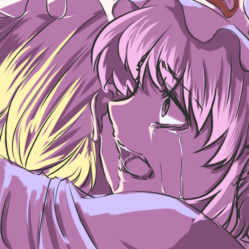 2girlsblonde haircryingcrying with eyes openfemale focushatmultiple girlsopen mouthpink hairtears