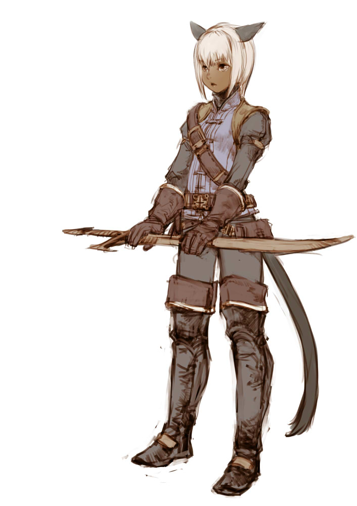 00s10s1girlanimal earsdark skindark-skinned femalefemale focusglovesmiqo'tesoloswordtailthighhighsweaponwhite hair