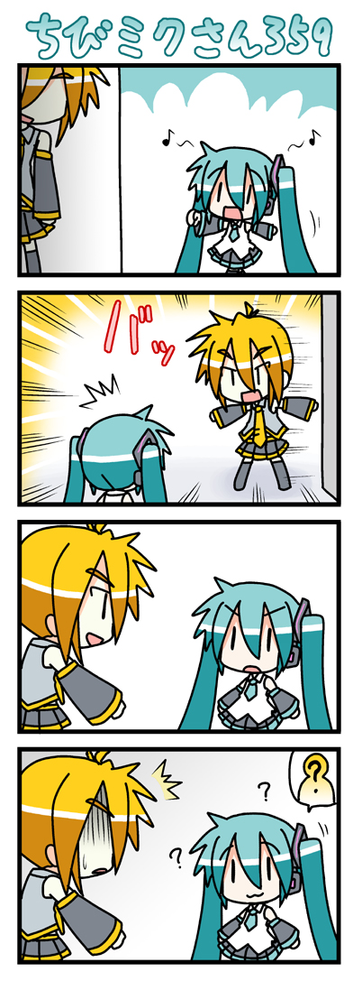 :31boy2girls4komaalternate hairstylechibicomicmultiple girlsmusical notequaversilent comicspeech bubbletwintails