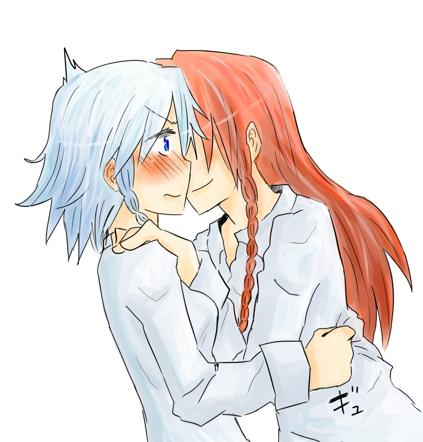 glenn andrean, strawberry panic!, silver hair, 2girls, flower, multiple girls, nude, red hair, yuri