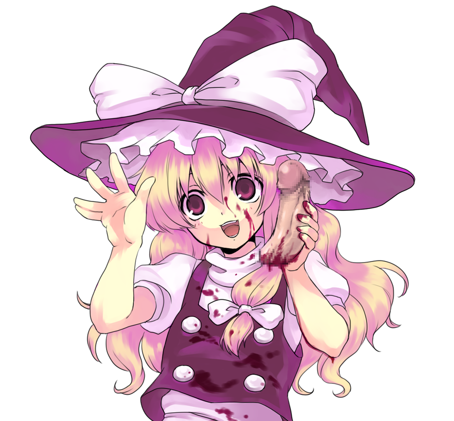 blonde hairbloodcensoredempty eyesgurohatlong hairmosaic censoringpenispink eyessevered penissolowitch hatyandere
