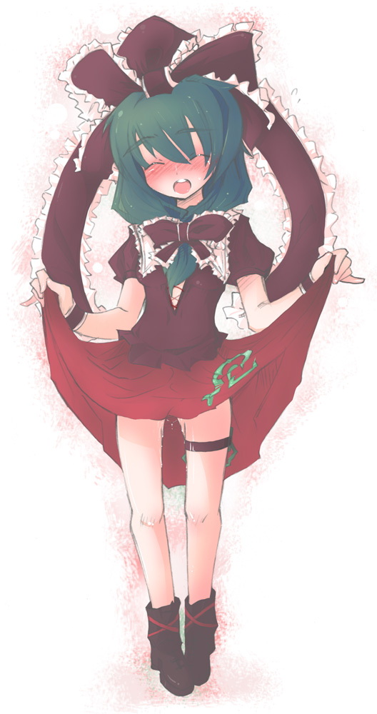 1girlblushclothes liftdiscreet vibratordressdress liftfemale focusgreen hairhair ribbonpussy juiceribbonsex toyshort hairsolovibrator