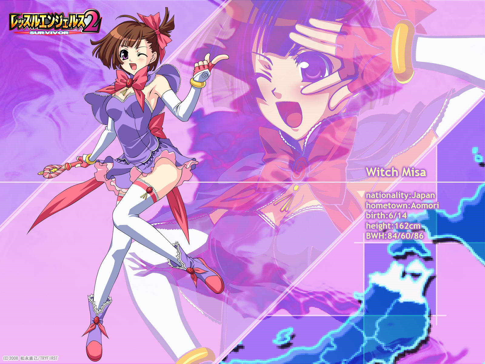 bootsbrown hairelbow glovesfingerless glovesglovesone eye closedpointingponytailpurple eyesshort hairthighhighswandwinkzettai ryouiki